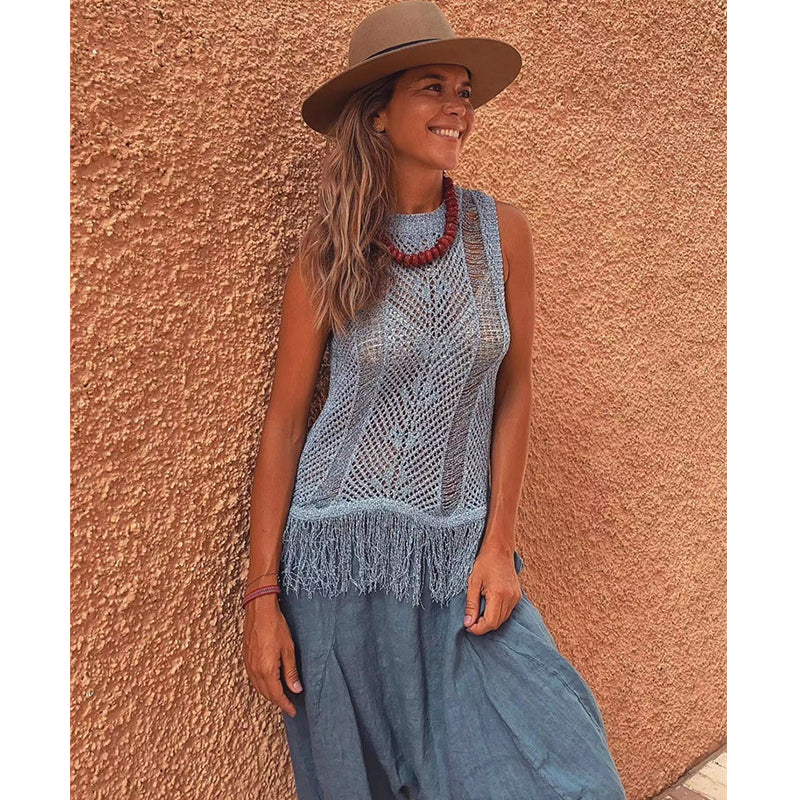 Apportez une touche bohème et élégante à votre tenue avec ce top sans manches au style crochet. Léger et respirant, il est parfait pour les journées ensoleillées tout en offrant un look naturel et raffiné.