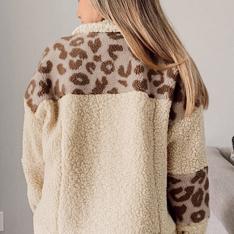 Cette veste femme en fausse fourrure style teddy allie douceur et tendance pour un look casual-chic irrésistible. Sa coupe ample et confortable en fait une pièce facile à porter au quotidien.